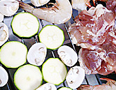 - エビ・塩コショウした鶏肉・マッシュルーム・ズッキーニを魚焼グリルで焼く。