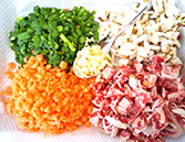 - ボウルに温かいご飯と(2)を入れ、混ぜ合わせる。ラップに包みたこ焼きサイズに丸める。