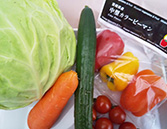 - フライパンにごま油を入れ、きゅうり、カラーピーマン、にんじん、キャベツを入れさっと炒める。(2)を加えて1分ほど加熱し火を止めミニトマトを加える。