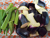 - なすは食べやすい大きさに切る。オクラはガクを取る。