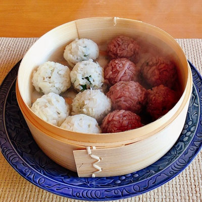 『ニラと新玉ねぎの紅白千切りシューマイ』 -